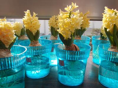 ヒヤシンスの水さいばい 投稿: 編集者 (02/24) カテゴリー: 1年生 令和8年2月24日 火曜日 12月に人権擁護委員会から各学年にいただいた「人権の花」の ヒヤシンスが咲いています。 花からいい香りがしています。 Tweet -