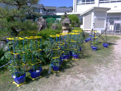 校内で児童がナス、かぼちゃ、ひょうたん、きゅうり、スイカ等の野菜やひまわり等の花をそだてています。