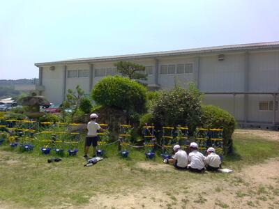 さつまいもは江田島アグリセンターの方に手伝っていただき、いのしし対策をしました。